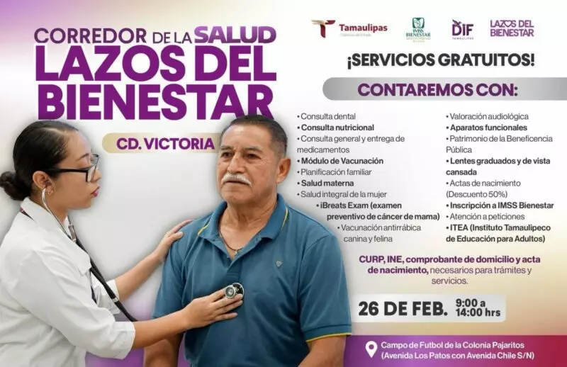 El Corredor de la Salud es una iniciativa que forma parte del programa Lazos del Bienestar, una estrategia de asistencia social, participación y colaboración comunitaria que se implementa en 12 polígonos de atención prioritaria en 10 municipios de Tamaulipas, entre ellos Victoria, que cuenta con los polígonos Echeverría y Pajaritos.