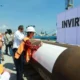 Posterior al evento, el gobernador y las y los invitados se trasladaron al patio de maniobras para realizar la firma de los cabezales de perforación que serán trasladados a la plataforma marítima.