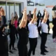 Los ejercicios realizados, explicó, van desde cardio de bajo impacto hasta movimientos de mayor intensidad, con el objetivo de adecuarse a las diferentes capacidades físicas de las participantes.