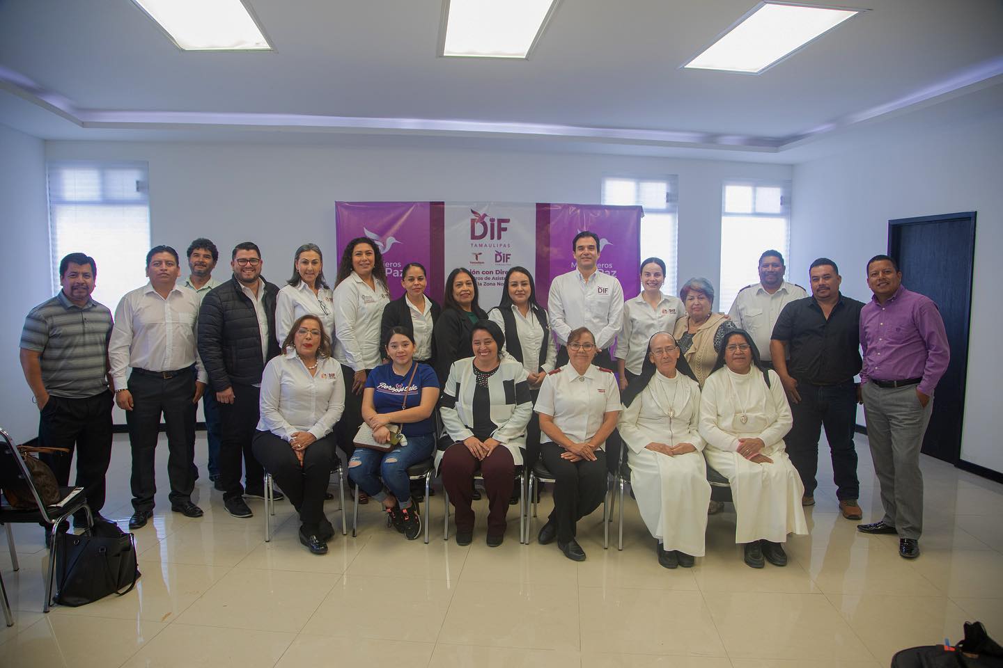 El director general del DIF Tamaulipas, Geancarlo Bonetta Cavazos, y personal de los centros de asistencia social de la zona…