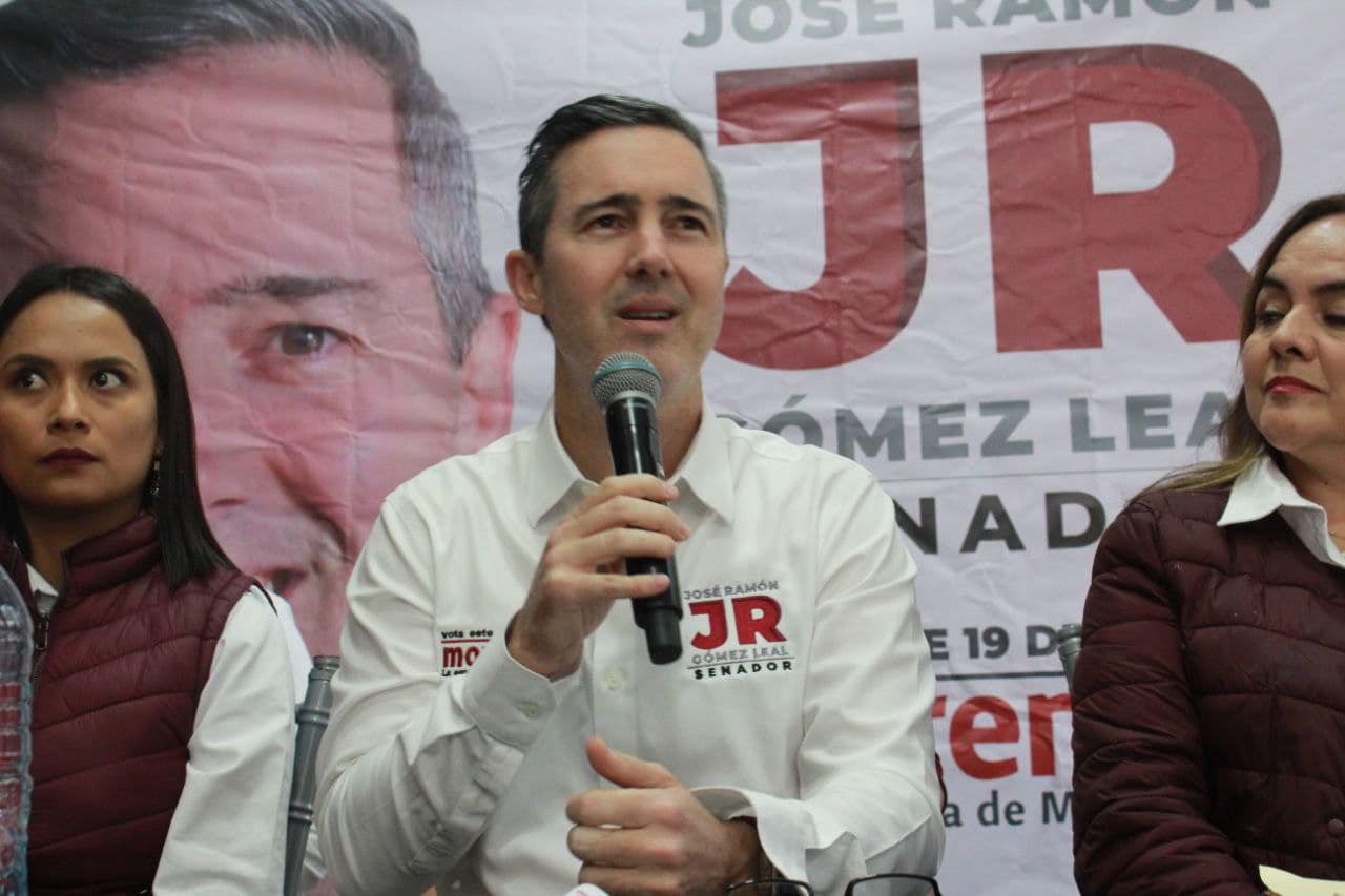 El candidato de la alianza Morena-PT, José Ramón Gómez Leal "JR", que busca llegar al Senado de la República en…