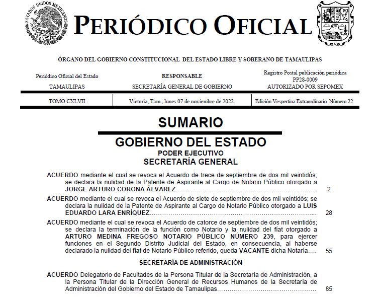 Cancelan Notaría y patentes de aspirantes de notarios otorgadas por Cabeza de Vaca