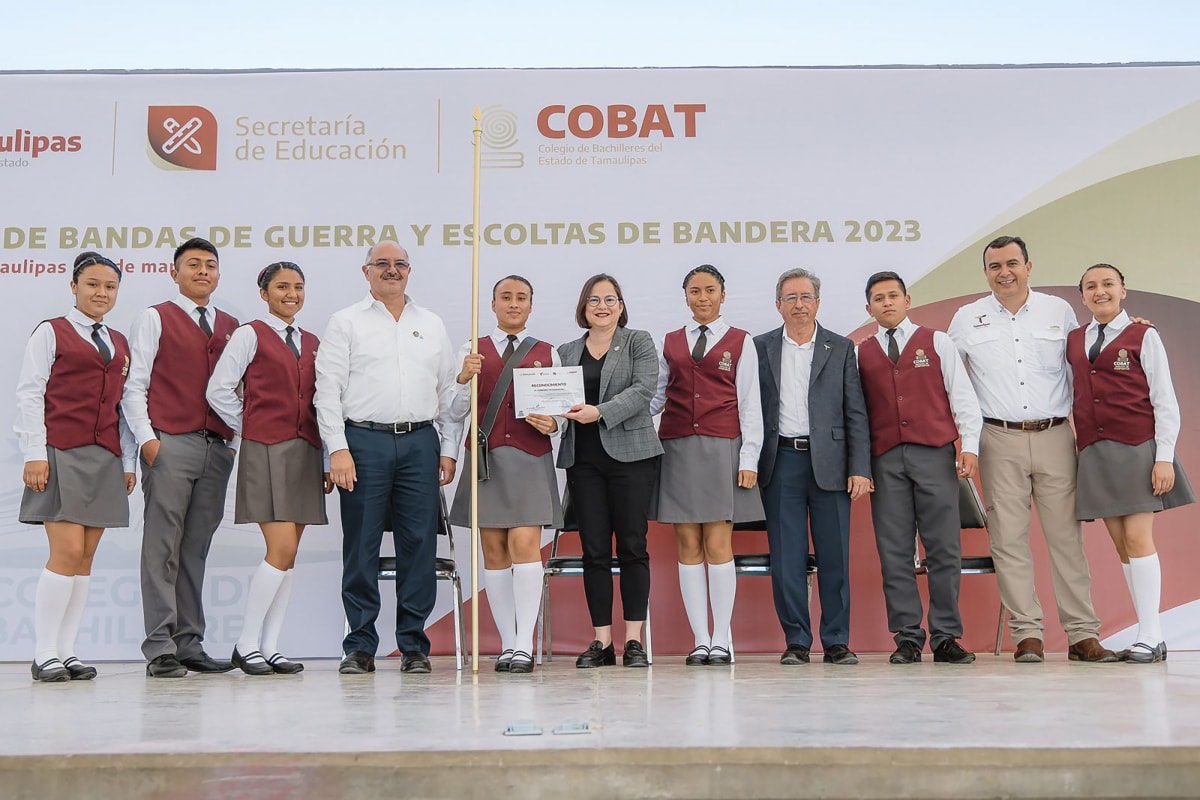 Premia SET a ganadores del concurso estatal de Escoltas de Bandera y Bandas de Guerra del COBAT