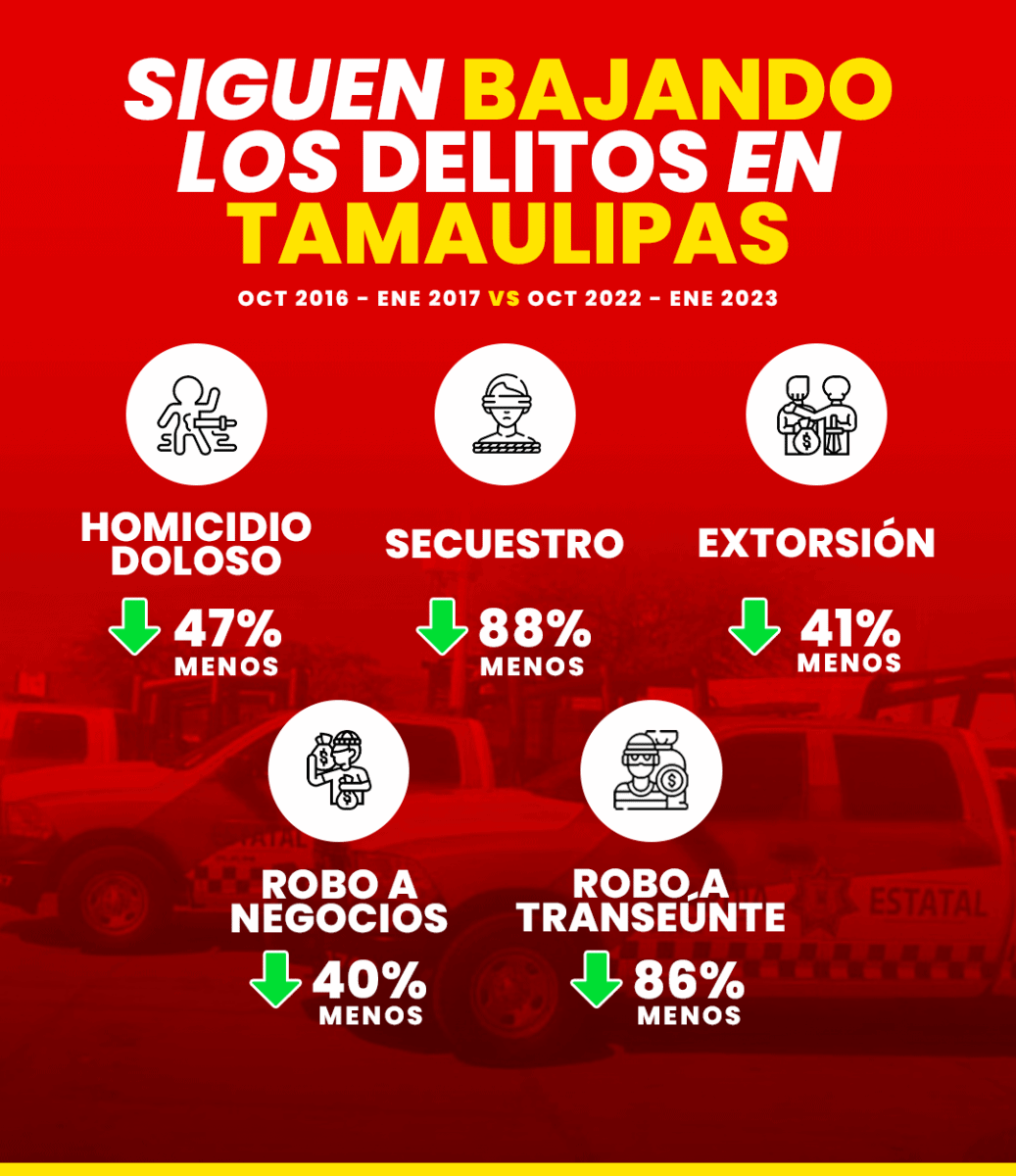 A 4 meses del nuevo Gobierno siguen a la baja los delitos en Tamaulipas; revelan indicadores