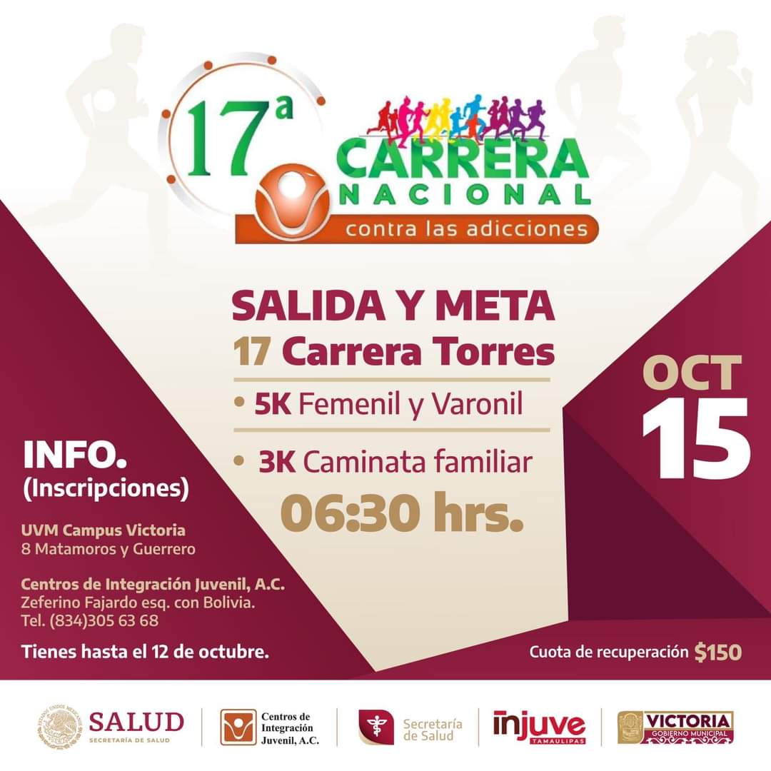Cd. Victoria, Tamps., 10 de octubre. – El Gobierno Municipal y Centro de Integración Juvenil Victoria A.C. invitan a participar…