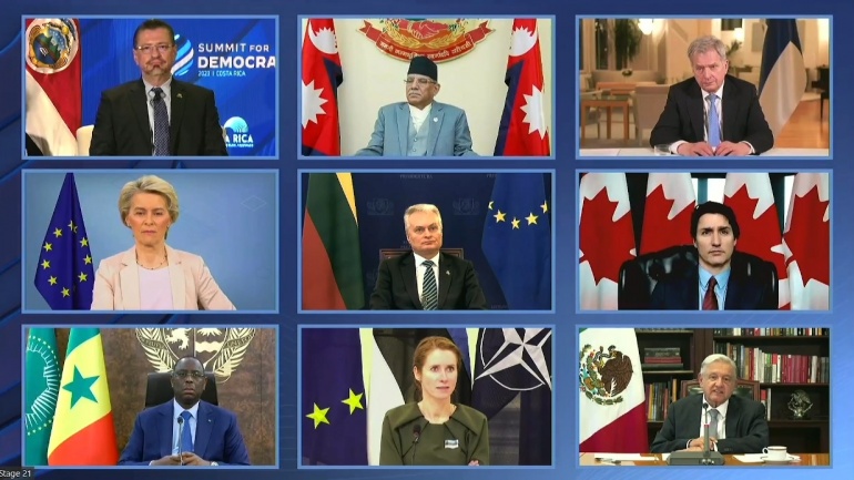 López Obrador participa en Cumbre por la Democracia 2023; llama a que sea verdadera y triunfe sobre el poder