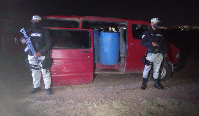 En Hidalgo, Guardia Nacional localiza en camioneta contenedores cargados con hidrocarburo de aparente procedencia ilegal