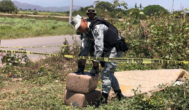 En Nayarit, Guardia Nacional y Ejército Mexicano aseguran paquetes con aparente marihuana en terreno baldío