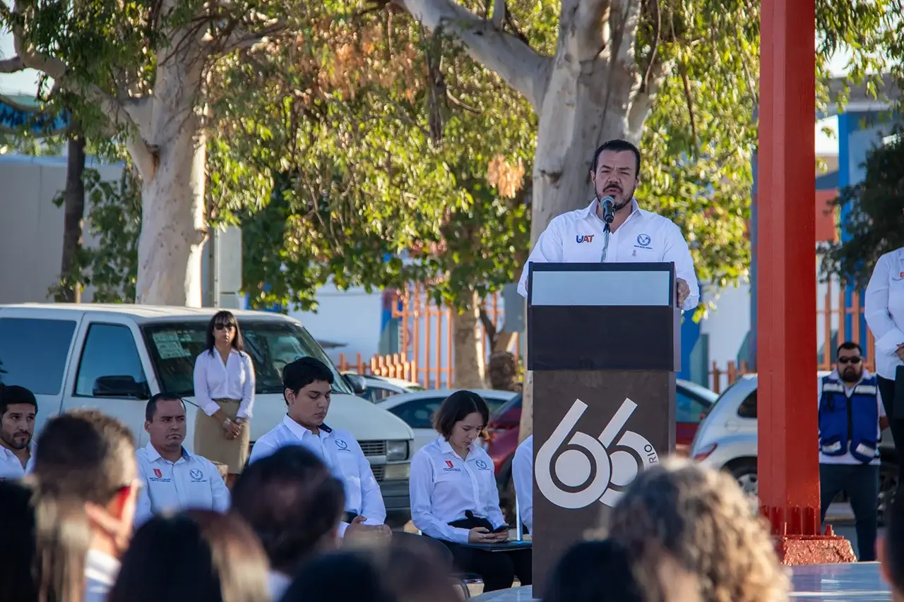 Al presidir en el campus Victoria la ceremonia de honores a la bandera nacional, el C.P. Guillermo Mendoza Cavazos, rector…